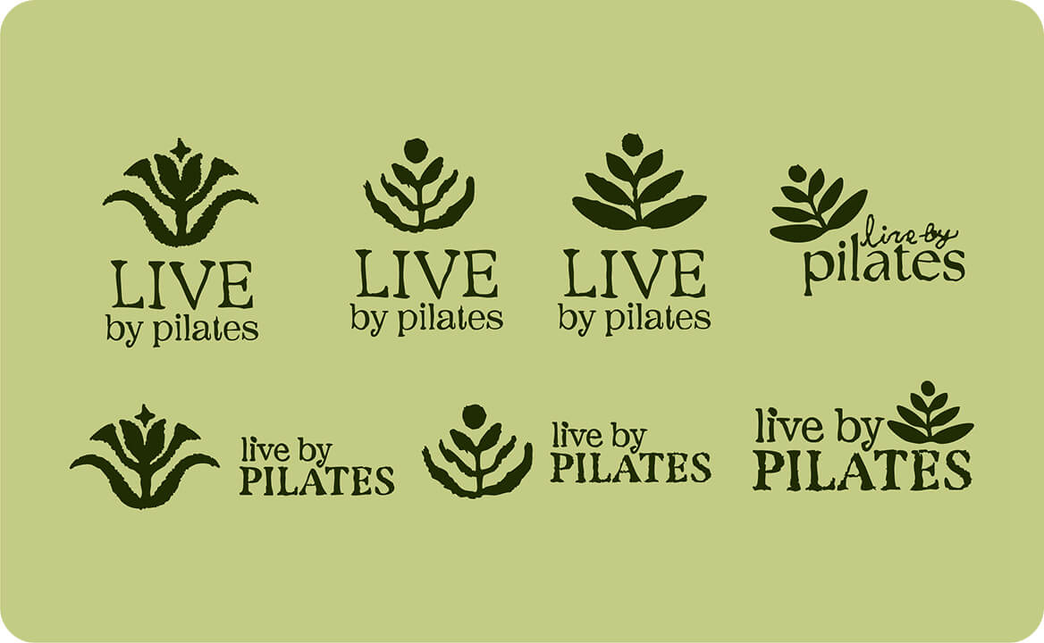 The refined LiveBy Pilates identity strikes a balance between calm structure and natural flow, capturing the mind–body connection at the core of Pilates. Its organic mark and soft green palette convey renewal, balance, and grounded energy, resulting in a brand that feels mindful, trustworthy, and refined.